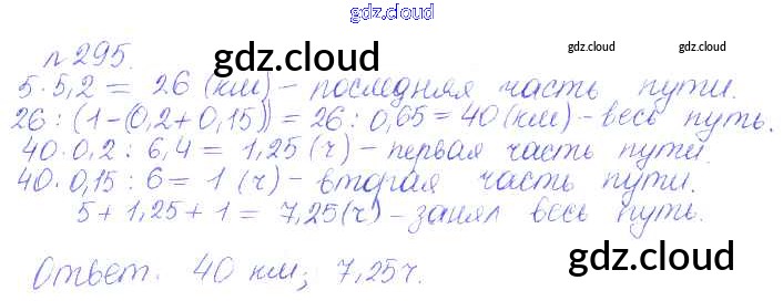Ответ на задание 295 Сборник задач и упражнений Математика за 6 (шестой) класс Гамбарин, Зубарева 2011