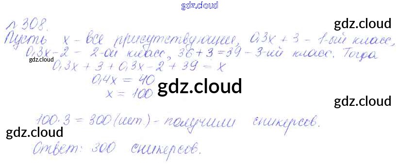 Ответ на задание 308 Сборник задач и упражнений Математика за 6 (шестой) класс Гамбарин, Зубарева 2011