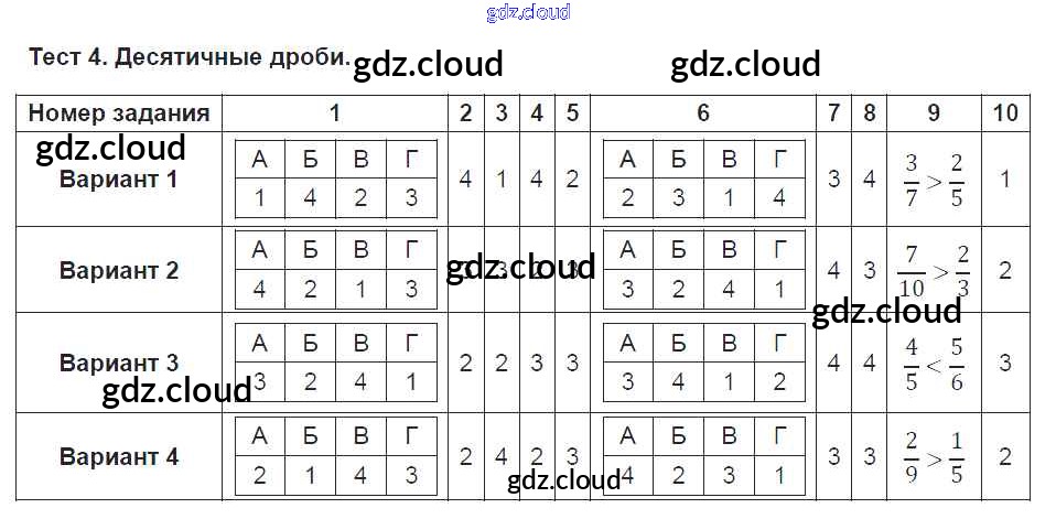 Ответы к Тестам по Математике 6 класс Тематические тесты Кузнецова Просвещение