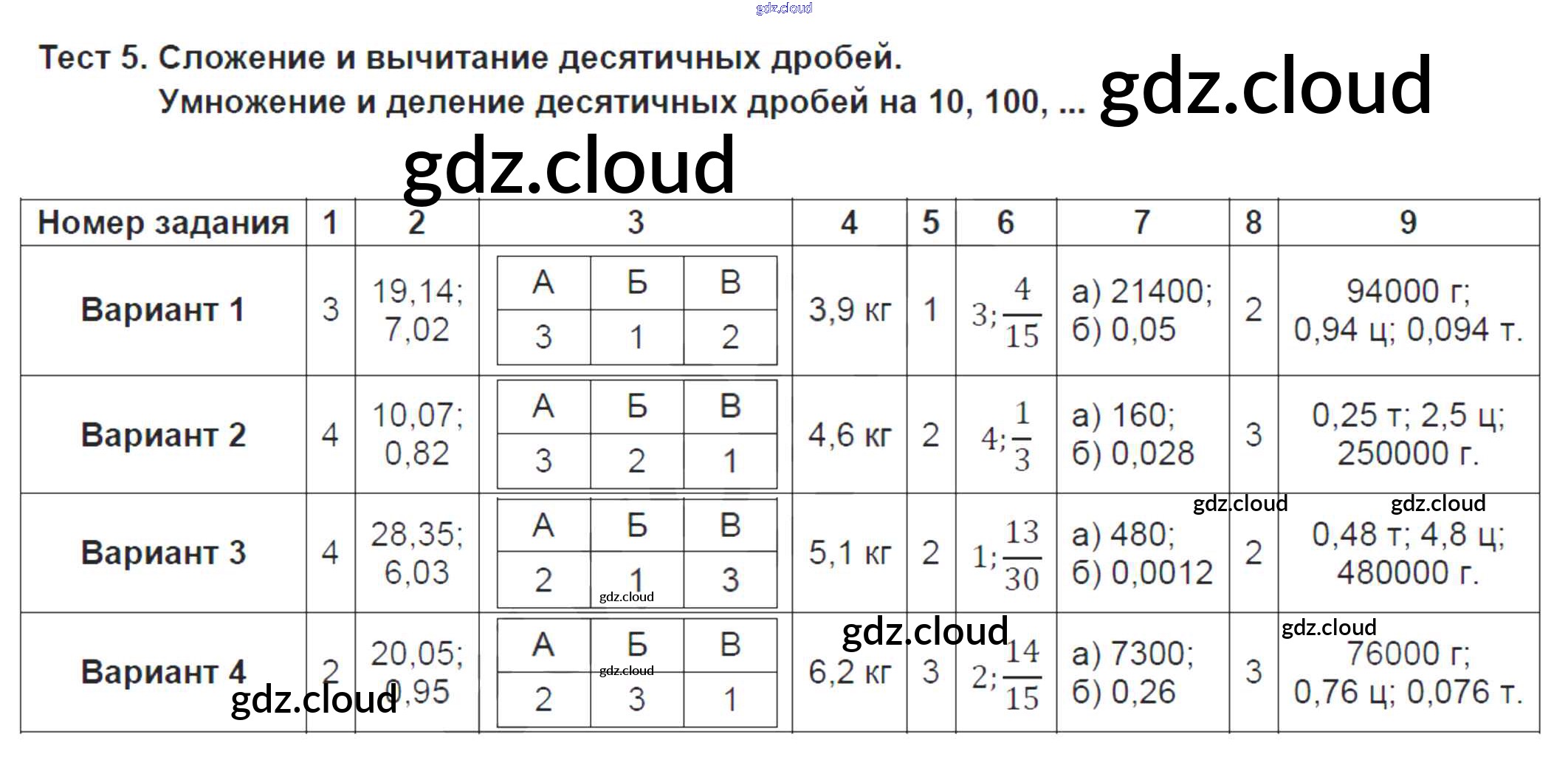 Ответы к Тестам по Математике 6 класс Тематические тесты Кузнецова Просвещение