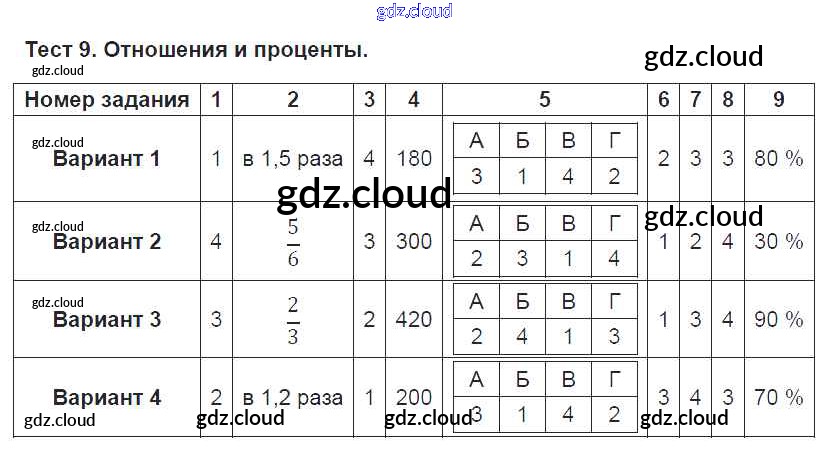 Ответ на задание 9 Тематические тесты Математика за 6 (шестой) класс Кузнецова, Минаева, Рослова, Суворова 2018 ФГОС онлайн и без номера телефона.