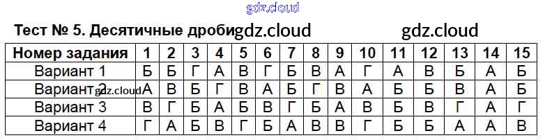Ответ на задание Тест №5. Десятичные дроби Тесты Математика за 5, 6 (пятый, шестой) класс Тульчинская УМК 2015 ФГОС онлайн и без номера телефона.