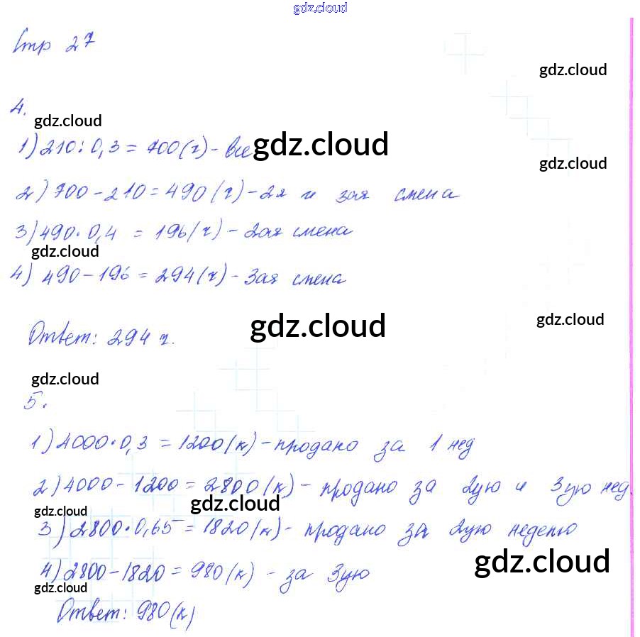 Ответ на задание стр.27 Тетрадь для контрольных работ Математика за 6 (шестой) класс Зубарева, Лепешонкова 2020 Часть 1, 2