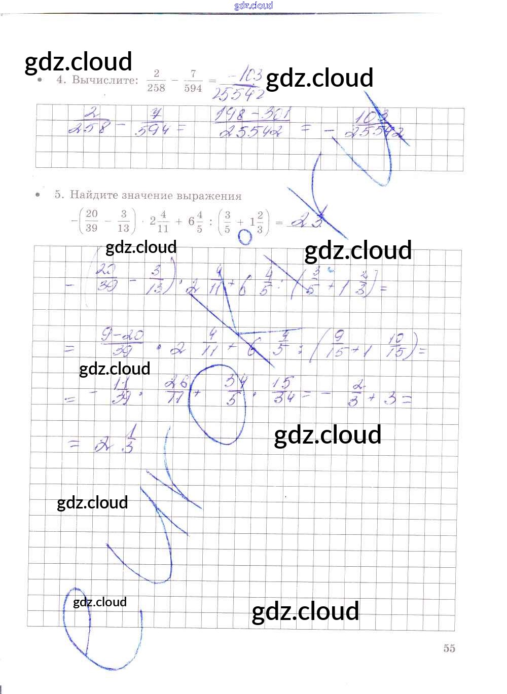 Ответ на задание стр.55 Тетрадь для контрольных работ Математика за 6 (шестой) класс Зубарева, Лепешонкова 2020 Часть 1, 2