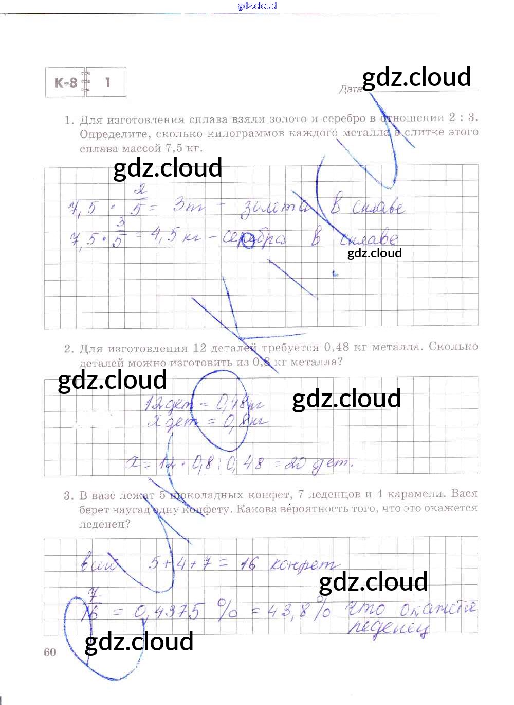 Ответ на задание стр.60 Тетрадь для контрольных работ Математика за 6 (шестой) класс Зубарева, Лепешонкова 2020 Часть 1, 2