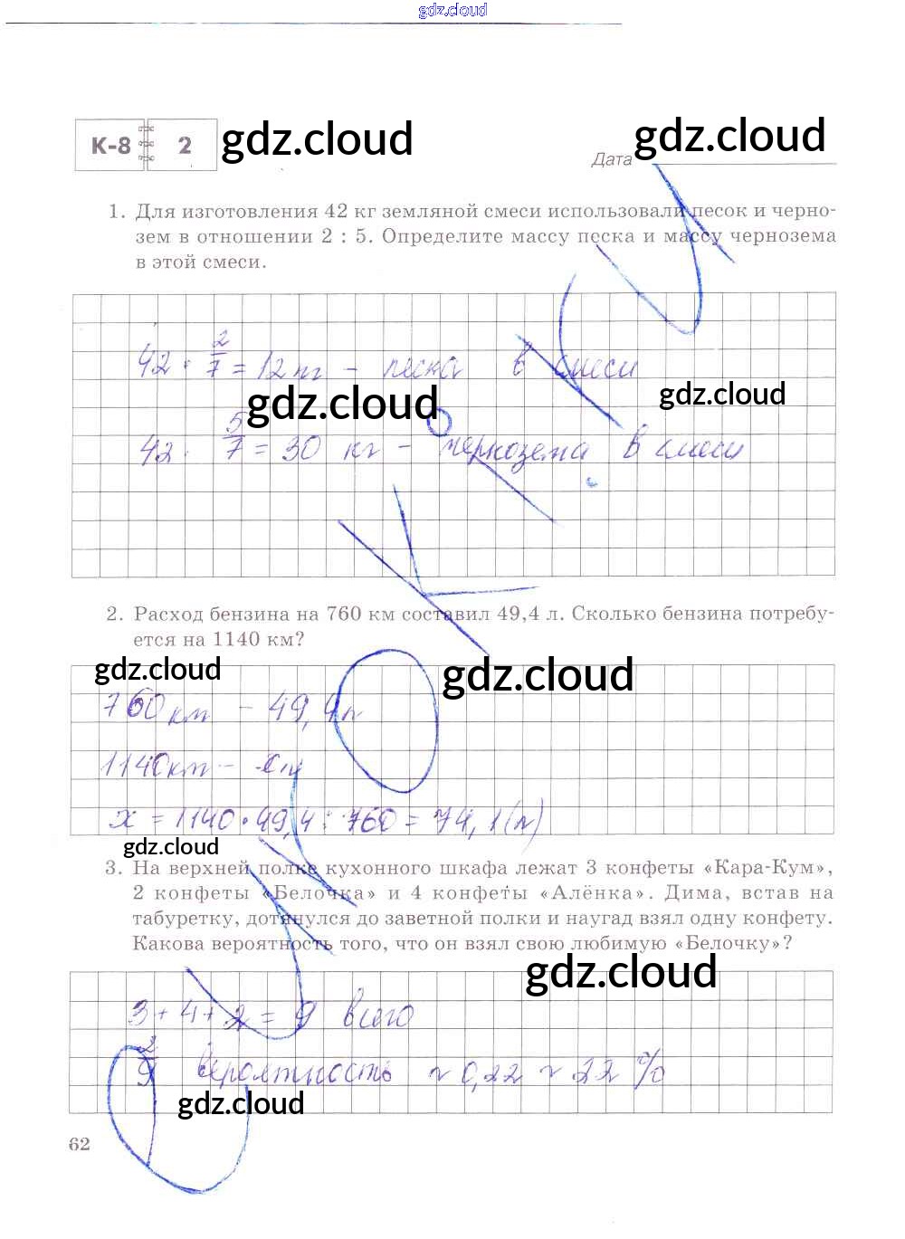 Ответ на задание стр.62 Тетрадь для контрольных работ Математика за 6 (шестой) класс Зубарева, Лепешонкова 2020 Часть 1, 2