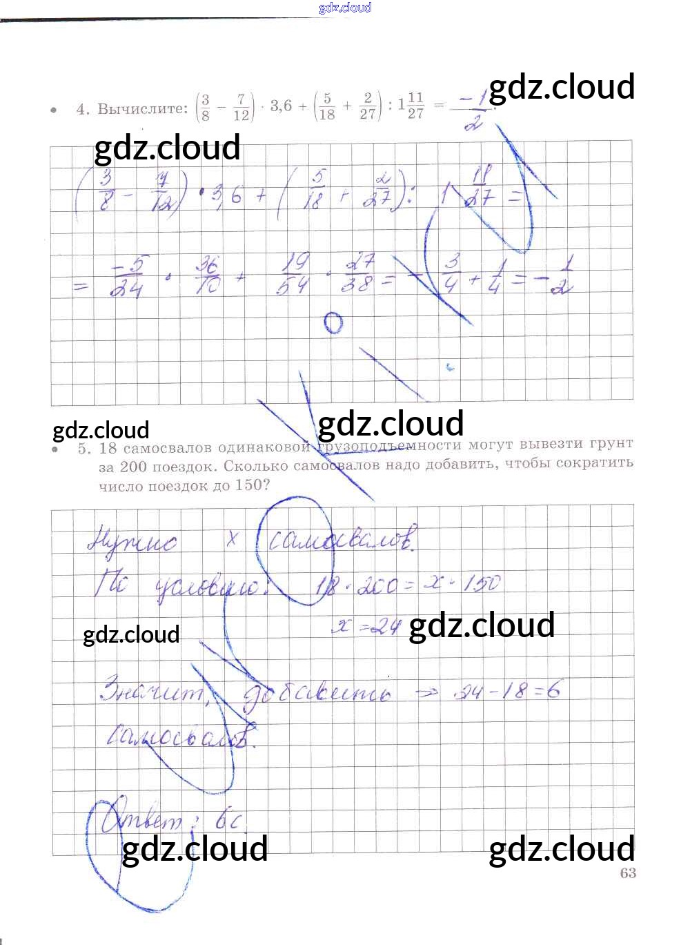 Ответ на задание стр.63 Тетрадь для контрольных работ Математика за 6 (шестой) класс Зубарева, Лепешонкова 2020 Часть 1, 2