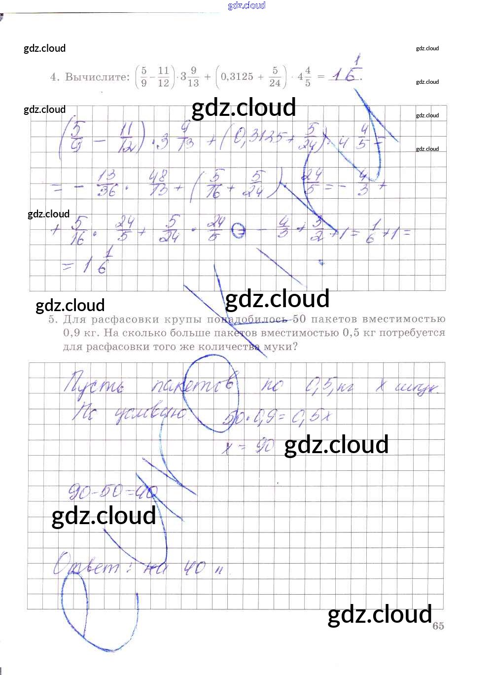 Ответ на задание стр.65 Тетрадь для контрольных работ Математика за 6 (шестой) класс Зубарева, Лепешонкова 2020 Часть 1, 2