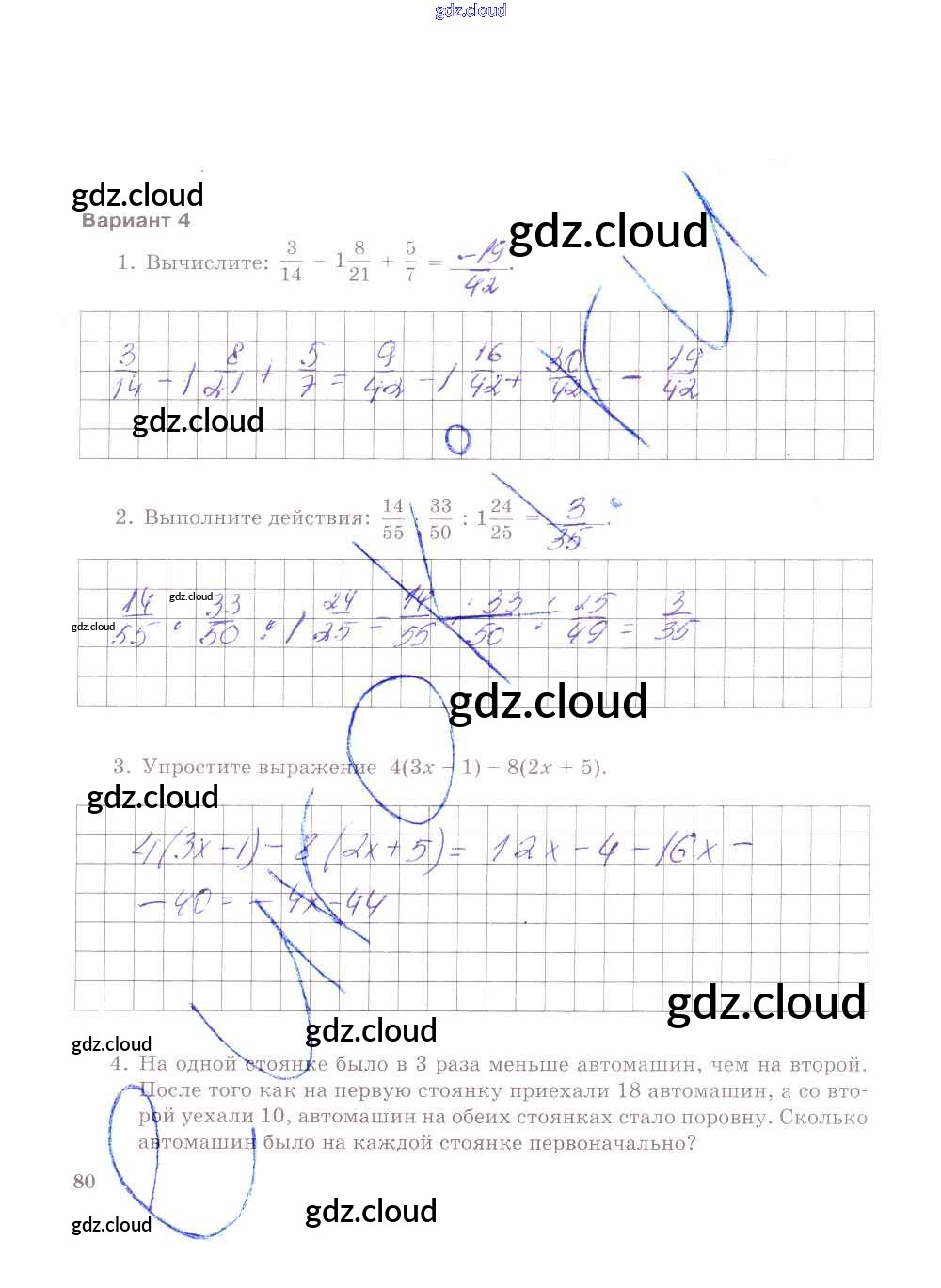 Ответ на задание стр.80 Тетрадь для контрольных работ Математика за 6 (шестой) класс Зубарева, Лепешонкова 2020 Часть 1, 2