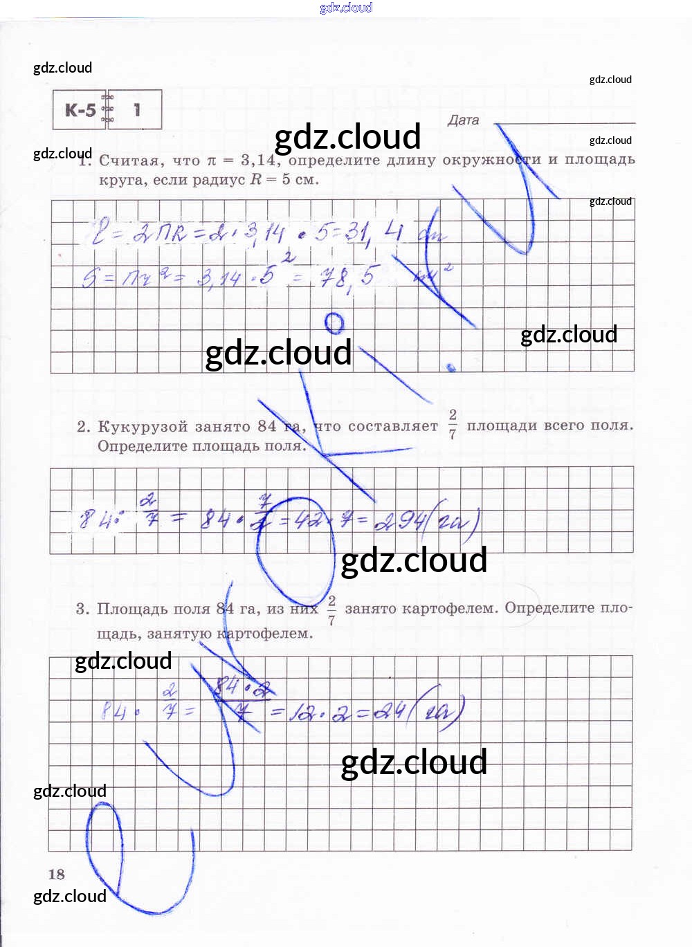 Ответ на задание стр.18 Тетрадь для контрольных работ Математика за 6 (шестой) класс Зубарева, Лепешонкова 2020 Часть 1, 2