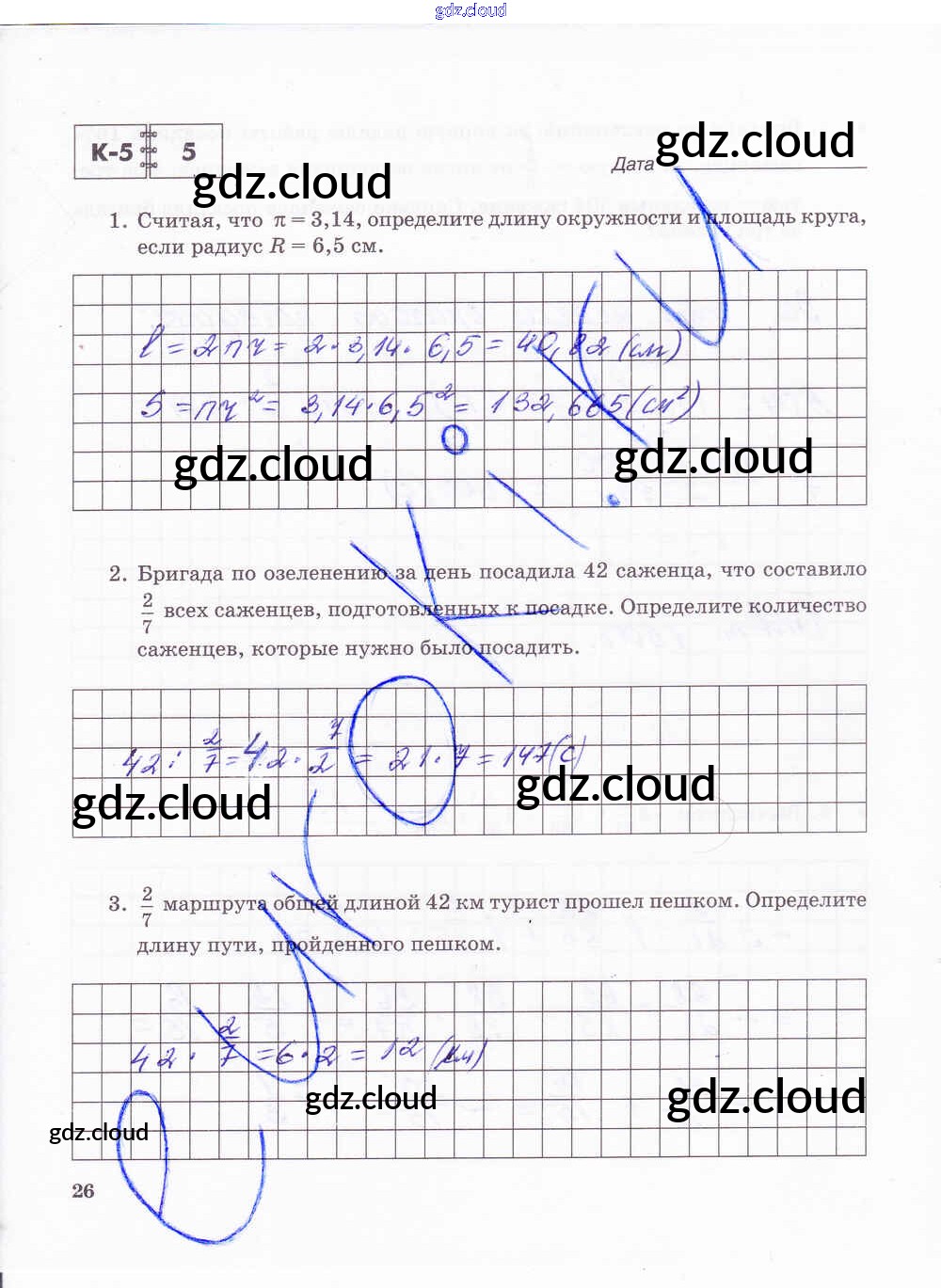 Ответ на задание стр.26 Тетрадь для контрольных работ Математика за 6 (шестой) класс Зубарева, Лепешонкова 2020 Часть 1, 2