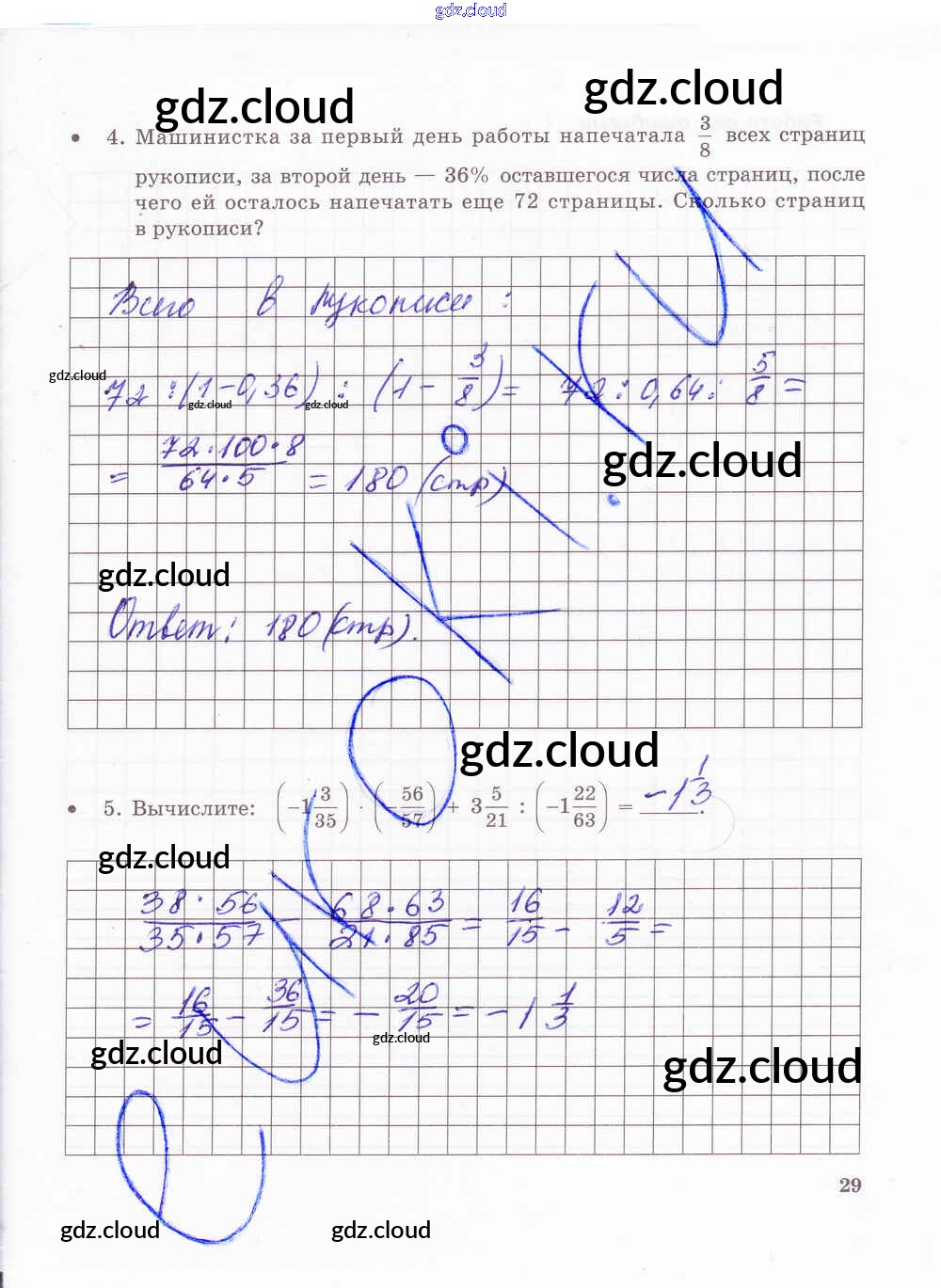 Ответ на задание стр.29 Тетрадь для контрольных работ Математика за 6 (шестой) класс Зубарева, Лепешонкова 2020 Часть 1, 2