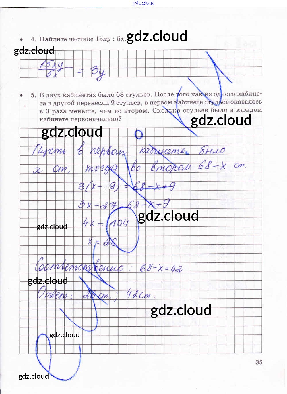 Ответ на задание стр.35 Тетрадь для контрольных работ Математика за 6 (шестой) класс Зубарева, Лепешонкова 2020 Часть 1, 2