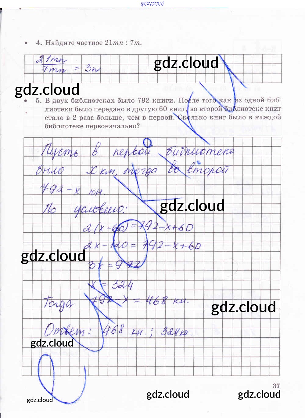 Ответ на задание стр.37 Тетрадь для контрольных работ Математика за 6 (шестой) класс Зубарева, Лепешонкова 2020 Часть 1, 2