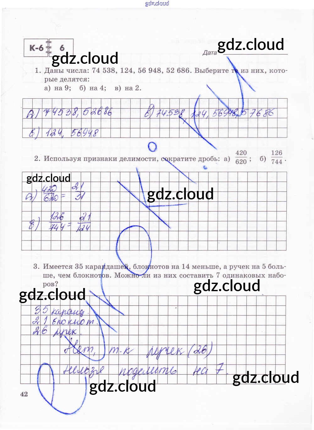 Ответ на задание стр.42 Тетрадь для контрольных работ Математика за 6 (шестой) класс Зубарева, Лепешонкова 2020 Часть 1, 2