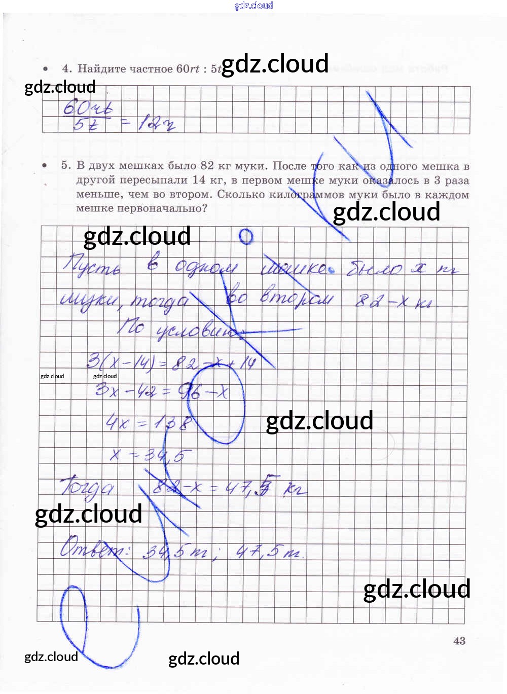 Ответ на задание стр.43 Тетрадь для контрольных работ Математика за 6 (шестой) класс Зубарева, Лепешонкова 2020 Часть 1, 2