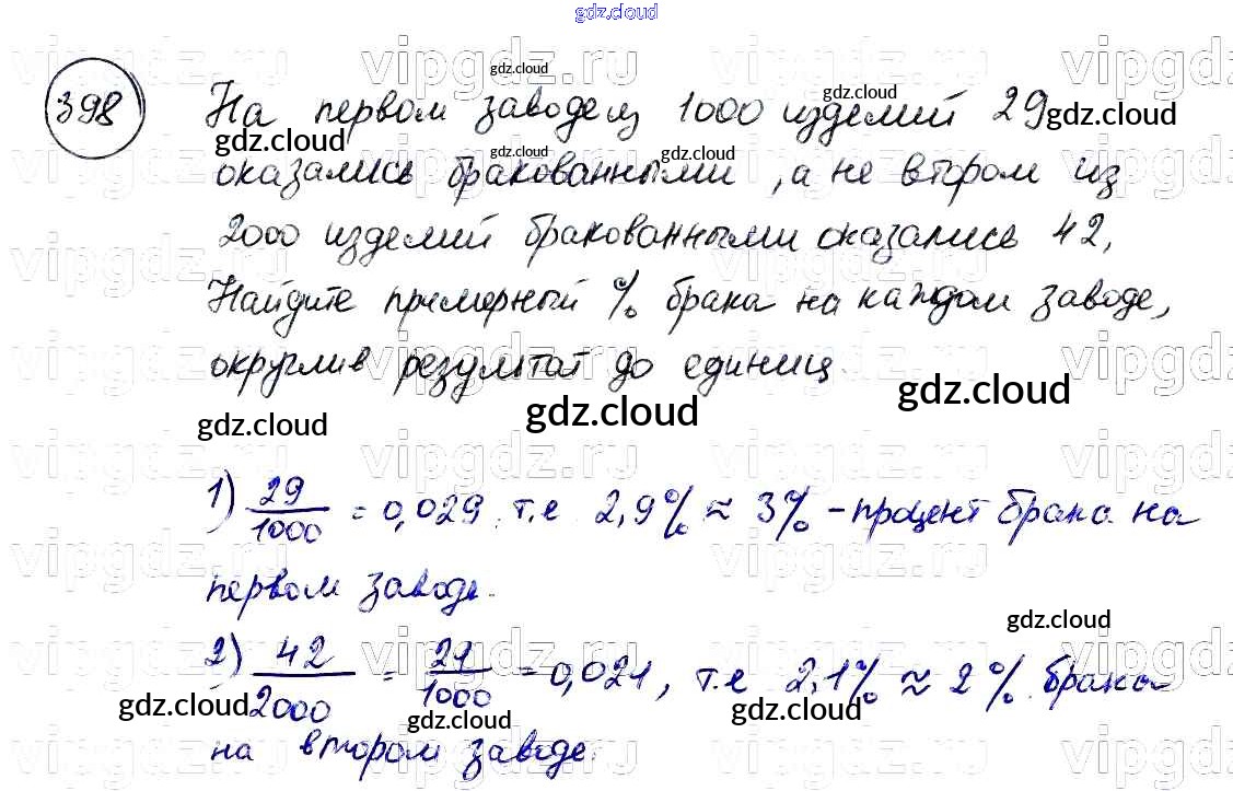 Ответ на задание 398 Учебник Математика за 6 (шестой) класс Бунимович, Кузнецова, Минаева Сферы 2014, 2019