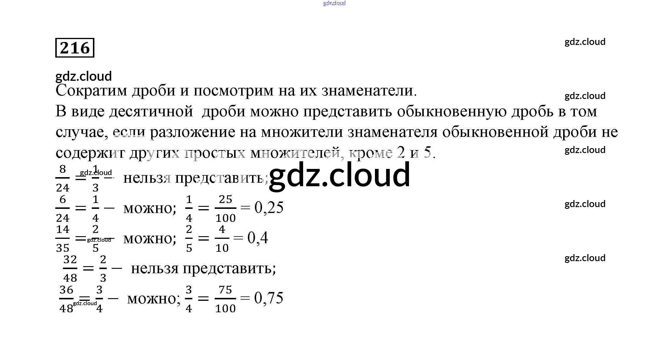 Ответ на задание 216 Учебник Математика за 6 (шестой) класс Дорофеев, Шарыгин, Суворова Академический школьный учебник 2014