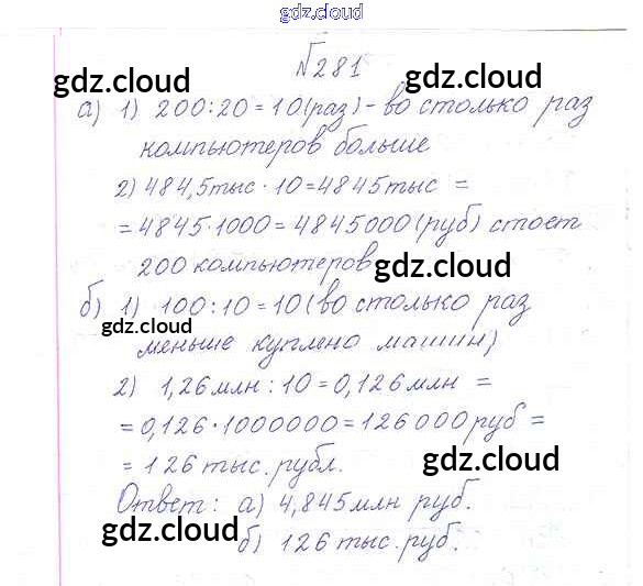 Ответ на задание 281 Учебник Математика за 6 (шестой) класс Дорофеев, Шарыгин, Суворова Академический школьный учебник 2014