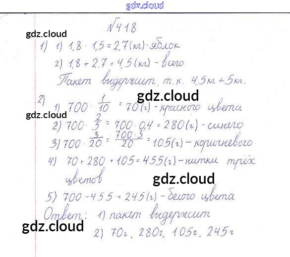 Ответ на задание 418 Учебник Математика за 6 (шестой) класс Дорофеев, Шарыгин, Суворова Академический школьный учебник 2014