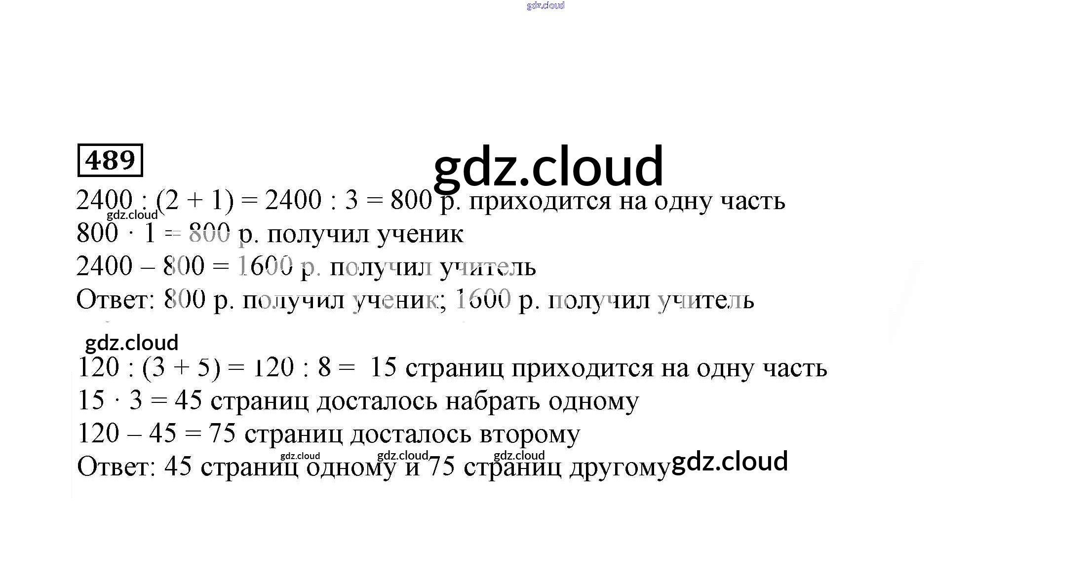 Ответ на задание 489 Учебник Математика за 6 (шестой) класс Дорофеев, Шарыгин, Суворова Академический школьный учебник 2014