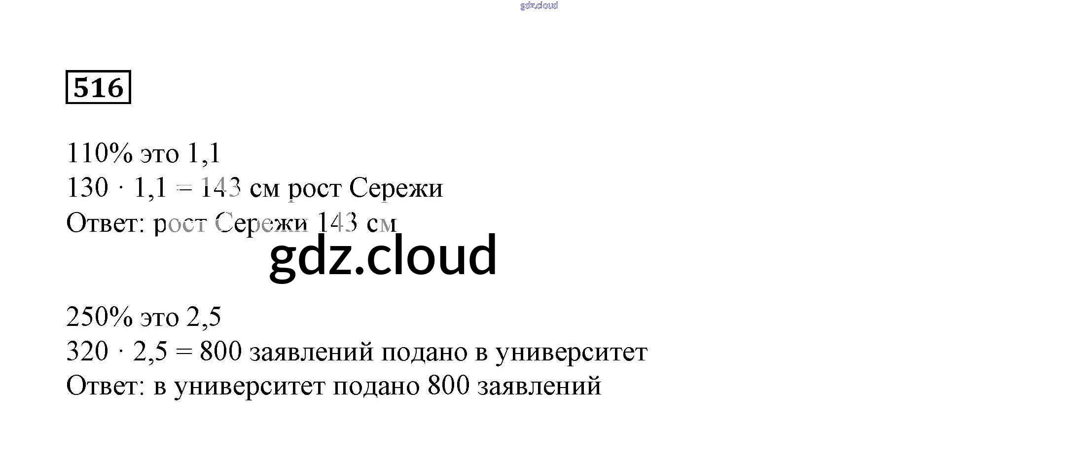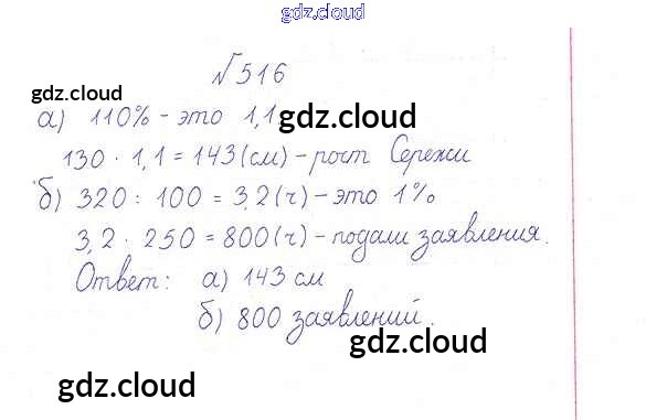 Ответ на задание 516 Учебник Математика за 6 (шестой) класс Дорофеев, Шарыгин, Суворова Академический школьный учебник 2014
