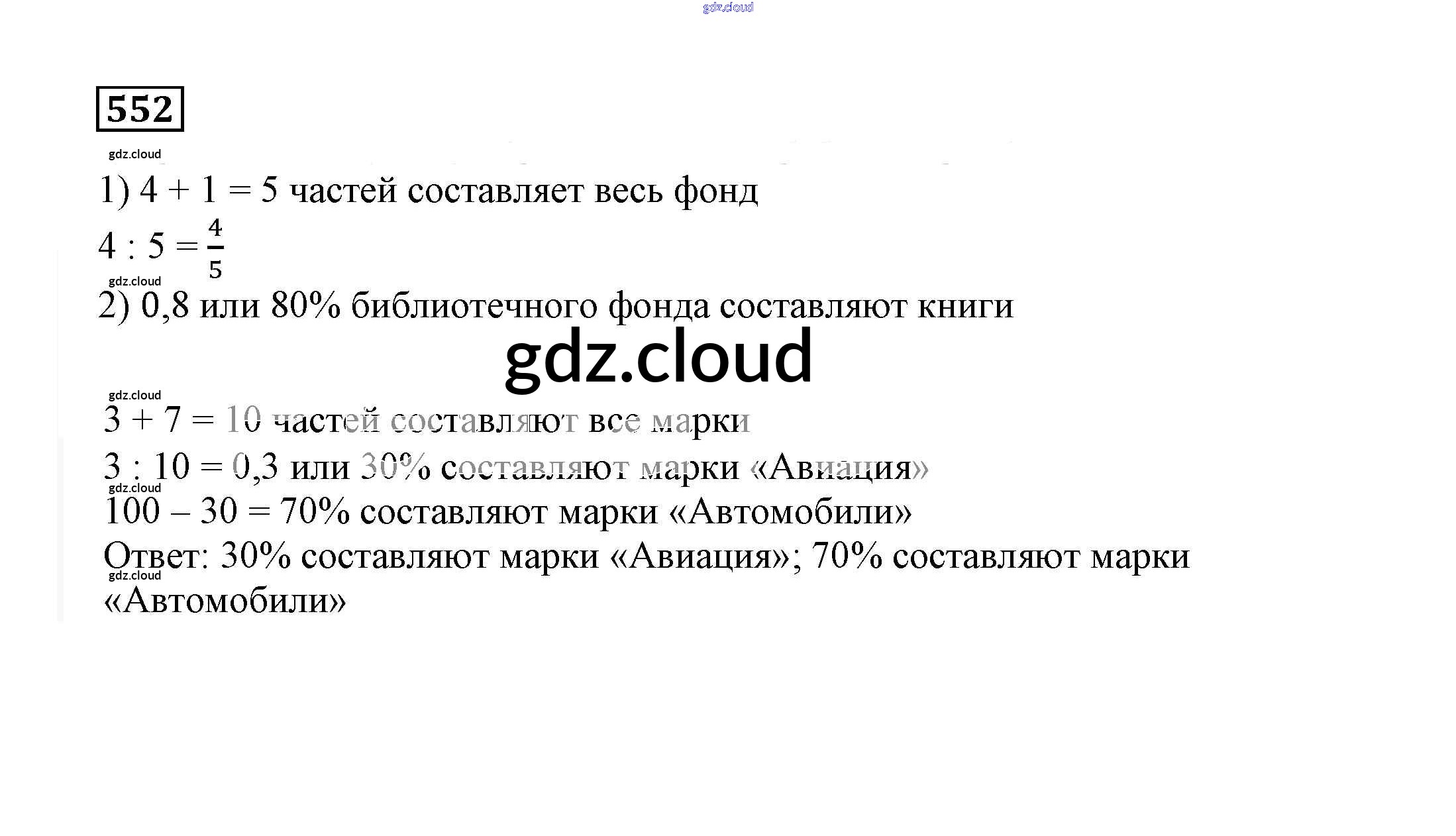 Ответ на задание 552 Учебник Математика за 6 (шестой) класс Дорофеев, Шарыгин, Суворова Академический школьный учебник 2014