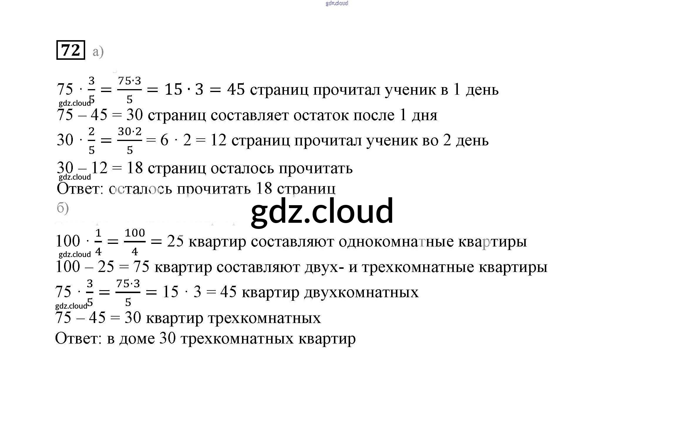 Ответ на задание 72 Учебник Математика за 6 (шестой) класс Дорофеев, Шарыгин, Суворова Академический школьный учебник 2014