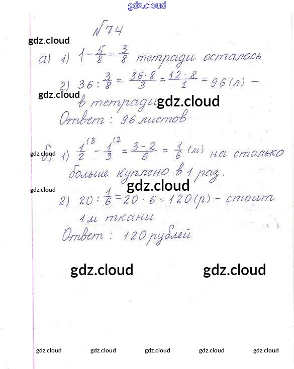 Ответ на задание 74 Учебник Математика за 6 (шестой) класс Дорофеев, Шарыгин, Суворова Академический школьный учебник 2014