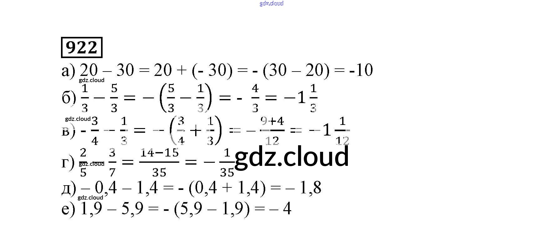 Ответ на задание 922 Учебник Математика за 6 (шестой) класс Дорофеев, Шарыгин, Суворова Академический школьный учебник 2014