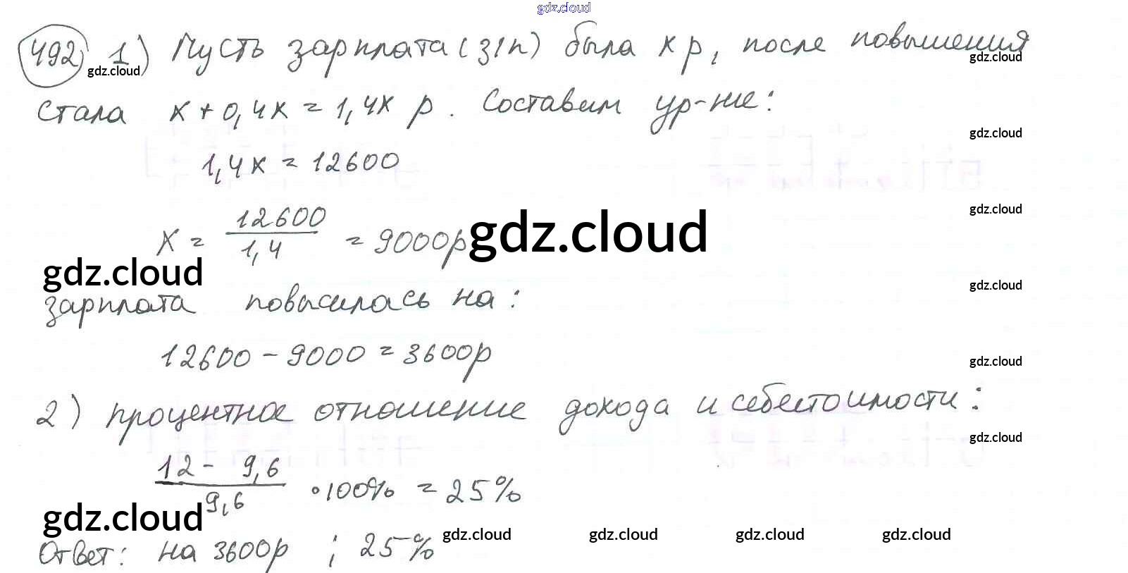 Ответ на задание 492 Учебник Математика за 6 (шестой) класс Петерсон, Дорофеев Учусь учиться 2014 Часть 1, 2, 3