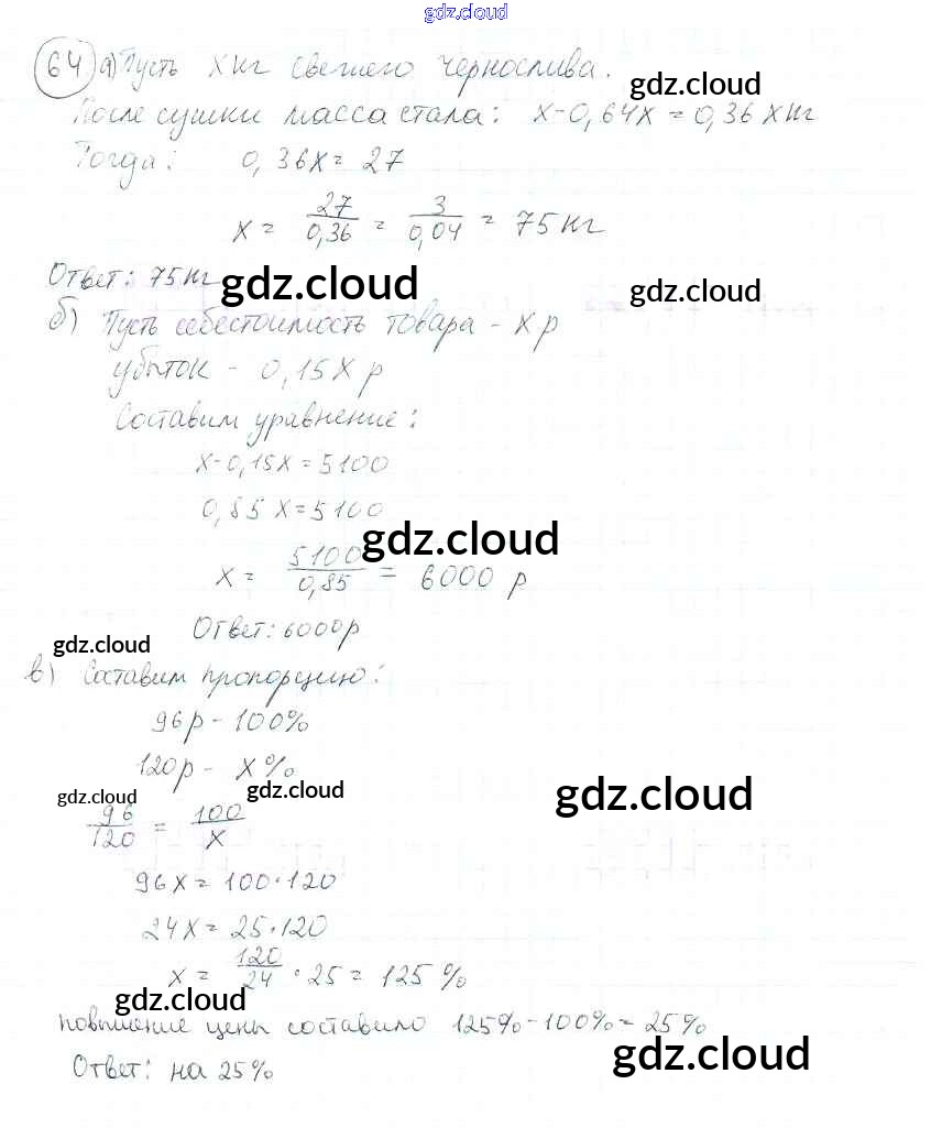 Ответ на задание 64 Учебник Математика за 6 (шестой) класс Петерсон, Дорофеев Учусь учиться 2014 Часть 1, 2, 3