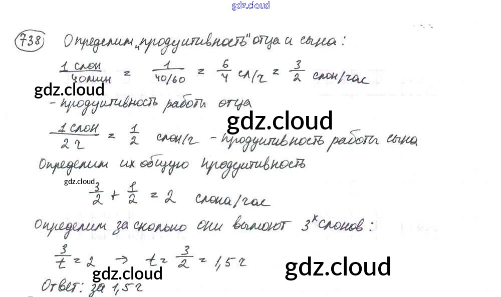 Ответ на задание 738 Учебник Математика за 6 (шестой) класс Петерсон, Дорофеев Учусь учиться 2014 Часть 1, 2, 3