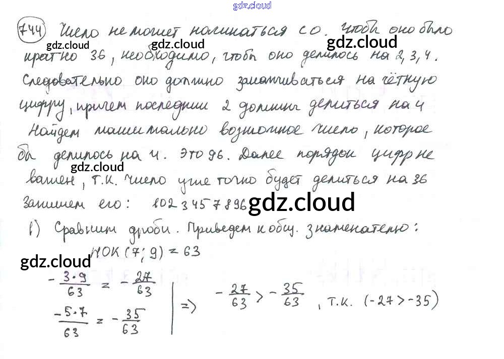 Ответ на задание 744 Учебник Математика за 6 (шестой) класс Петерсон, Дорофеев Учусь учиться 2014 Часть 1, 2, 3