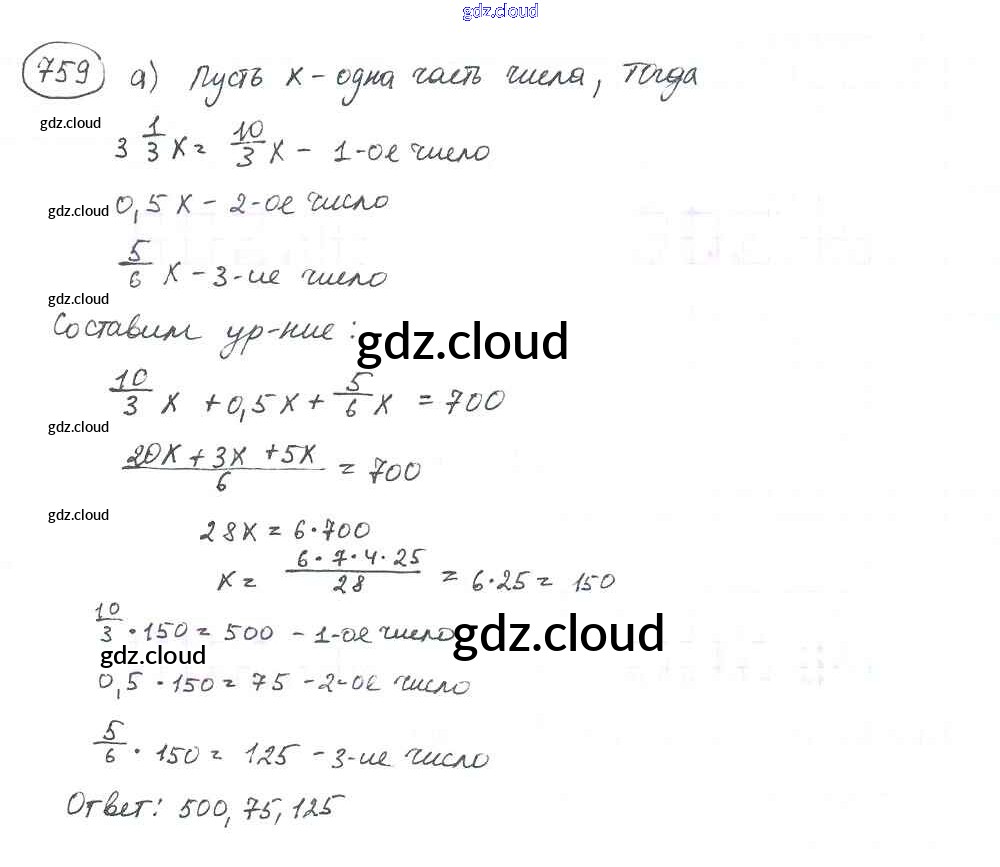 Ответ на задание 759 Учебник Математика за 6 (шестой) класс Петерсон, Дорофеев Учусь учиться 2014 Часть 1, 2, 3