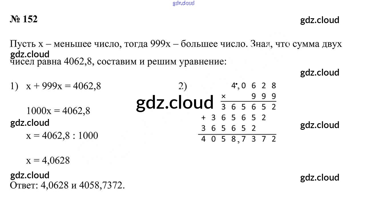 Ответ на задание 152 Учебник Математика за 6 (шестой) класс Герасимов, Пирютко 2018 онлайн и без номера телефона.