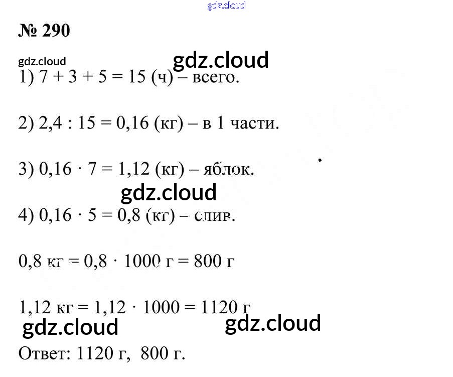 Ответ на задание 290 Учебник Математика за 6 (шестой) класс Герасимов, Пирютко 2018 онлайн и без номера телефона.