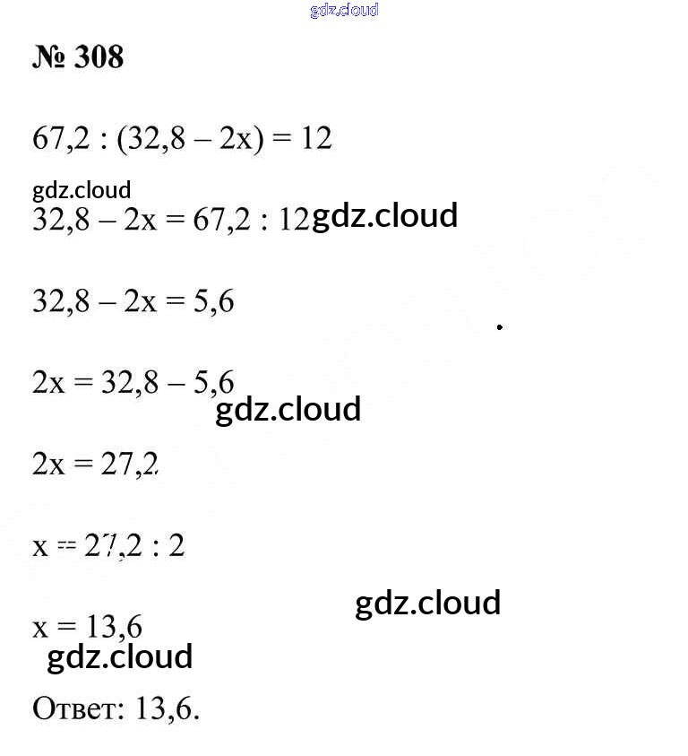 Ответ на задание 308 Учебник Математика за 6 (шестой) класс Герасимов, Пирютко 2018 онлайн и без номера телефона.