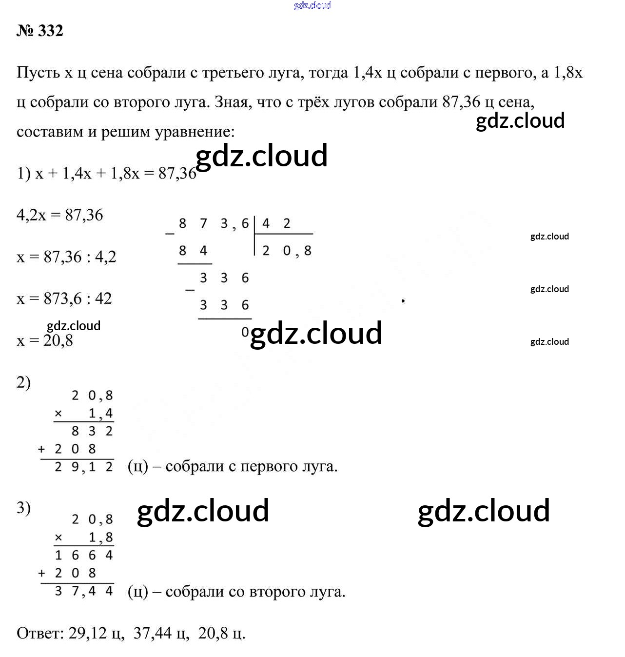 Ответ на задание 332 Учебник Математика за 6 (шестой) класс Герасимов, Пирютко 2018 онлайн и без номера телефона.
