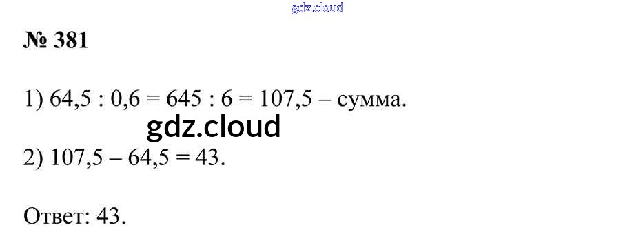 Ответ на задание 381 Учебник Математика за 6 (шестой) класс Герасимов, Пирютко 2018 онлайн и без номера телефона.