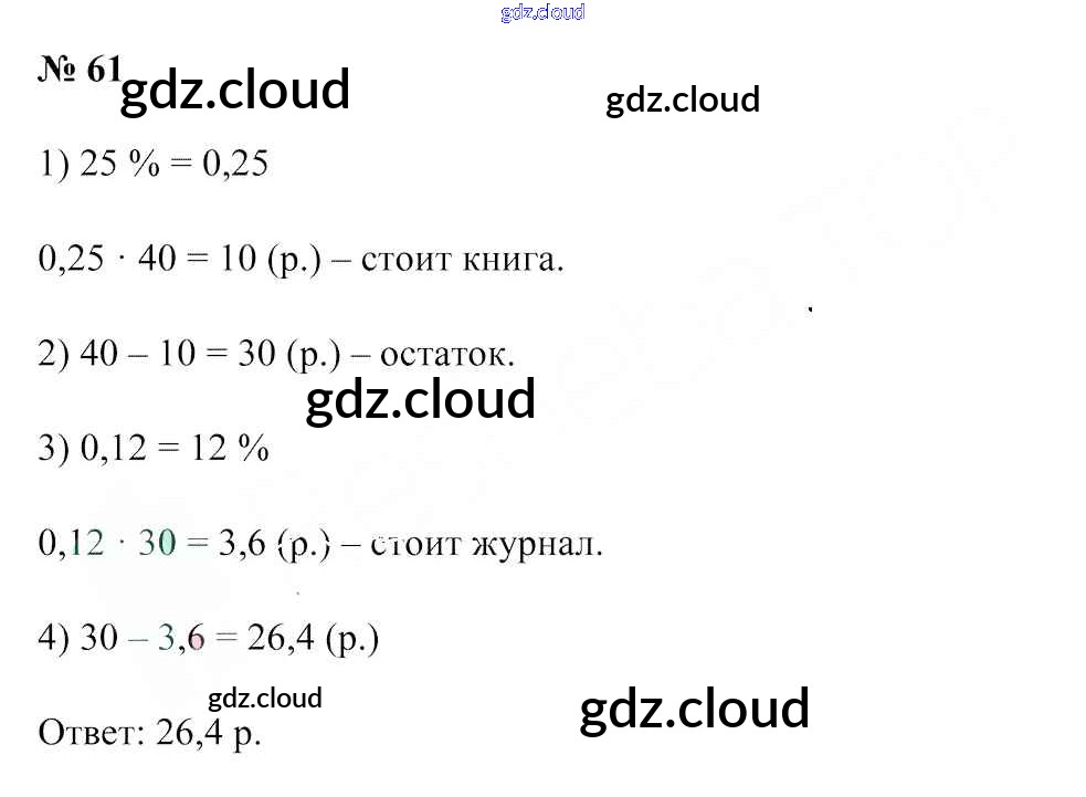 Ответ на задание 61 Учебник Математика за 6 (шестой) класс Герасимов, Пирютко 2018 онлайн и без номера телефона.