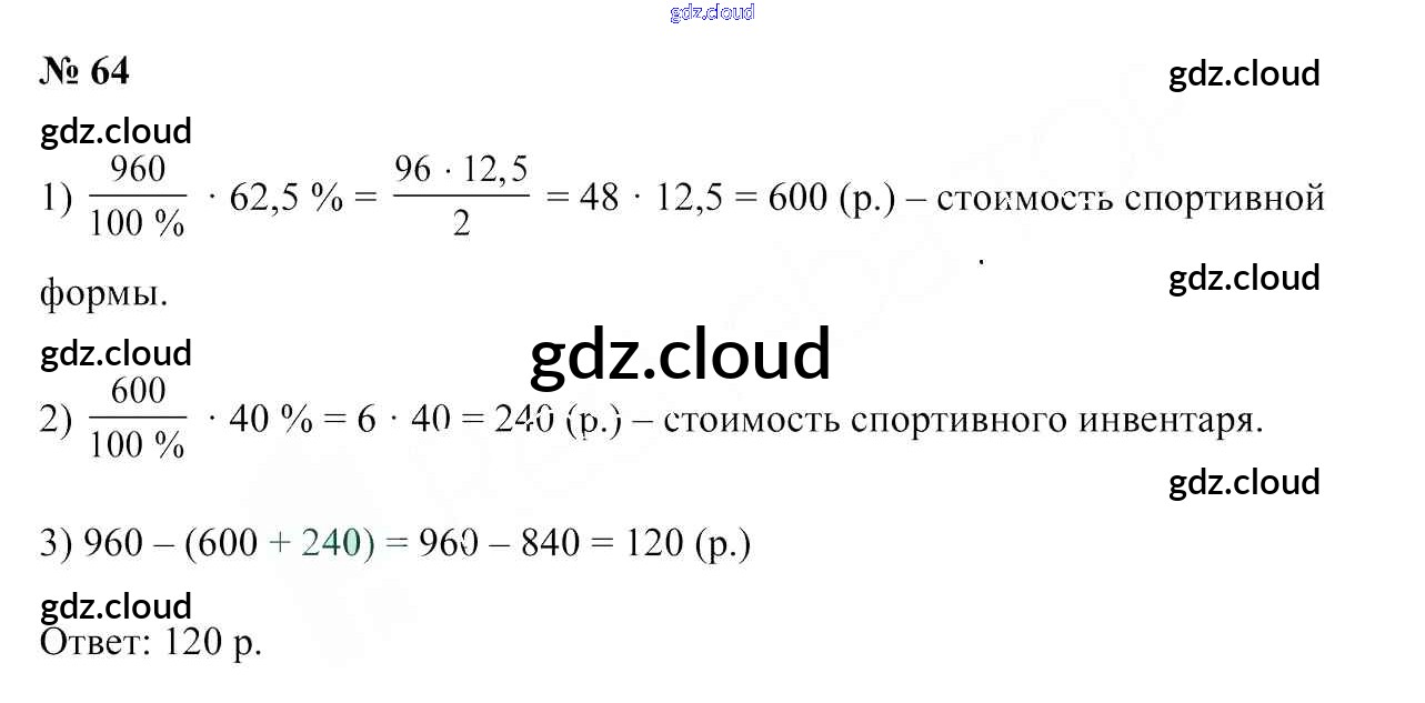 Ответ на задание 64 Учебник Математика за 6 (шестой) класс Герасимов, Пирютко 2018 онлайн и без номера телефона.