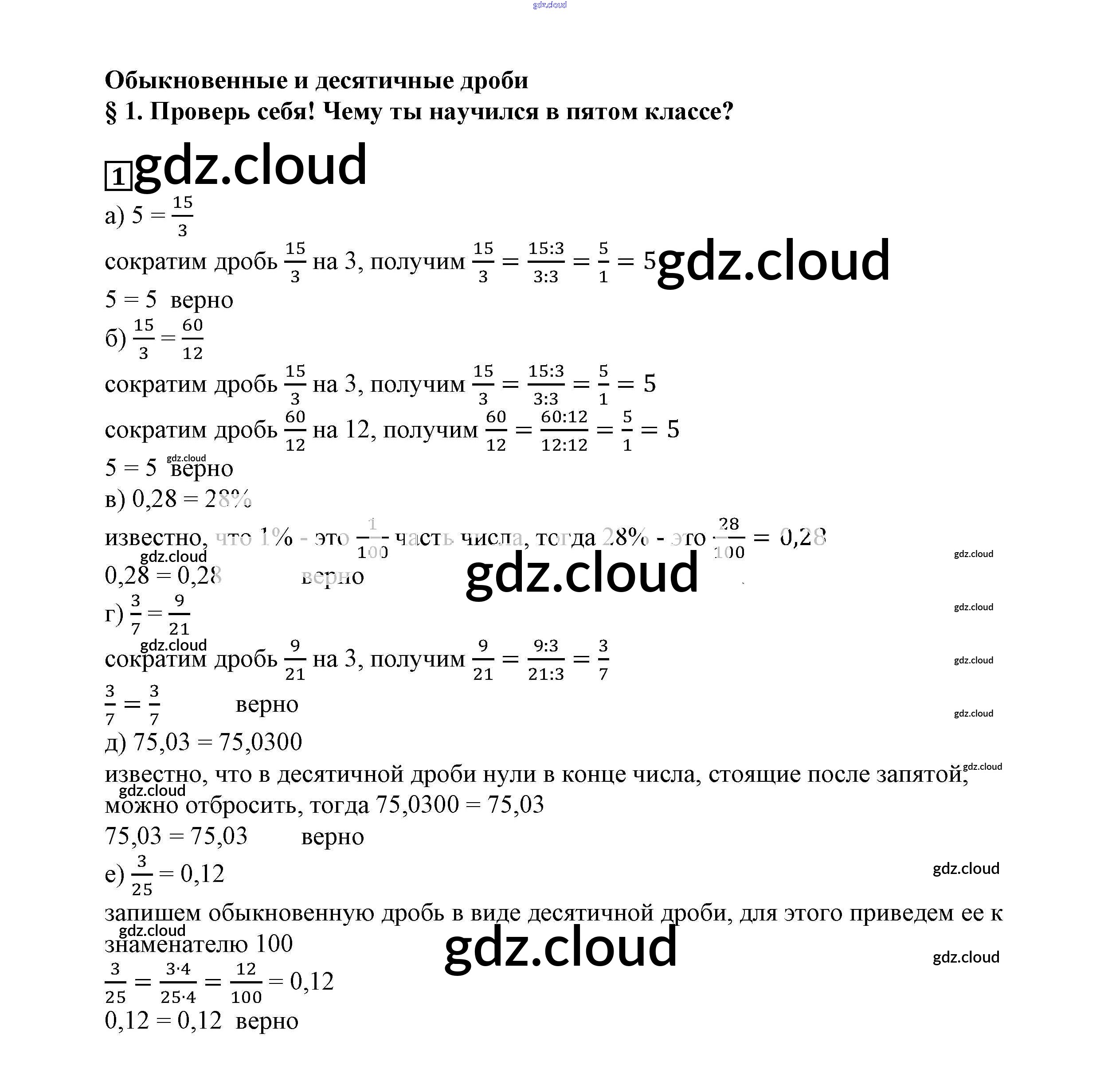Ответ на задание 1 Учебник Математика за 6 (шестой) класс Истомина 2015 ФГОС онлайн и без номера телефона.