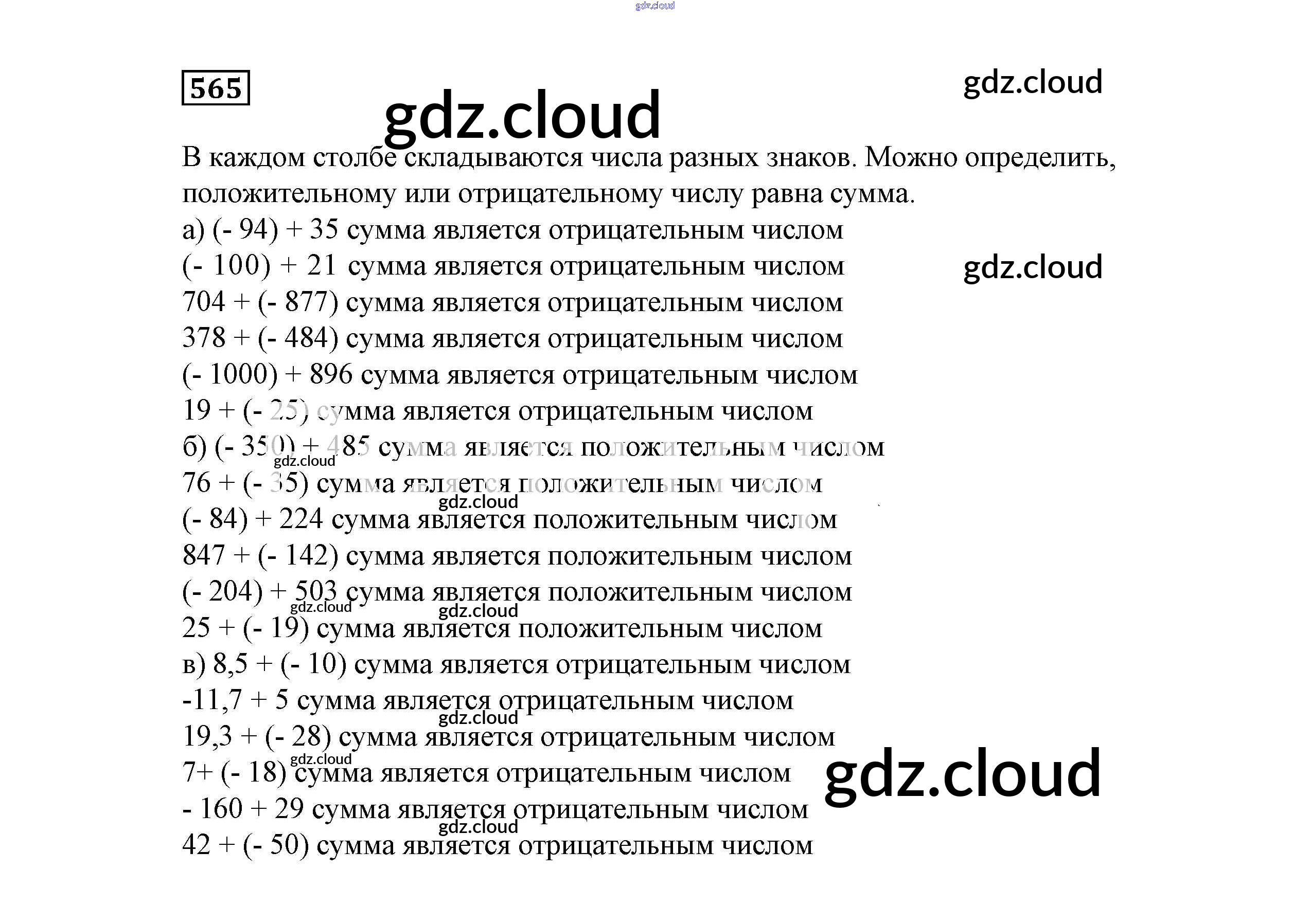 Ответ на задание 565 Учебник Математика за 6 (шестой) класс Истомина 2015 ФГОС онлайн и без номера телефона.