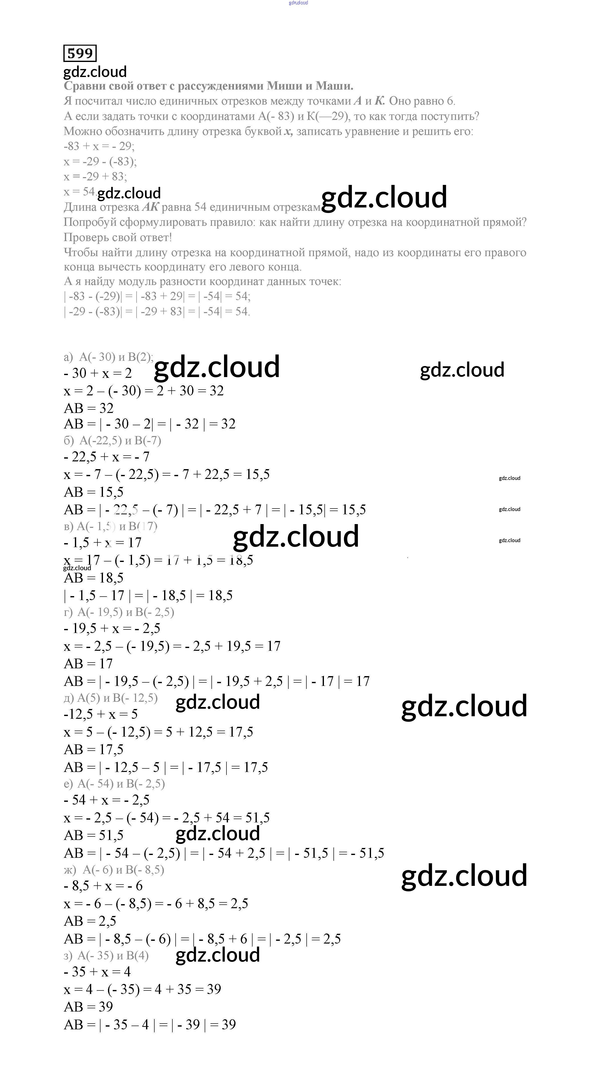 Ответ на задание 599 Учебник Математика за 6 (шестой) класс Истомина 2015 ФГОС онлайн и без номера телефона.