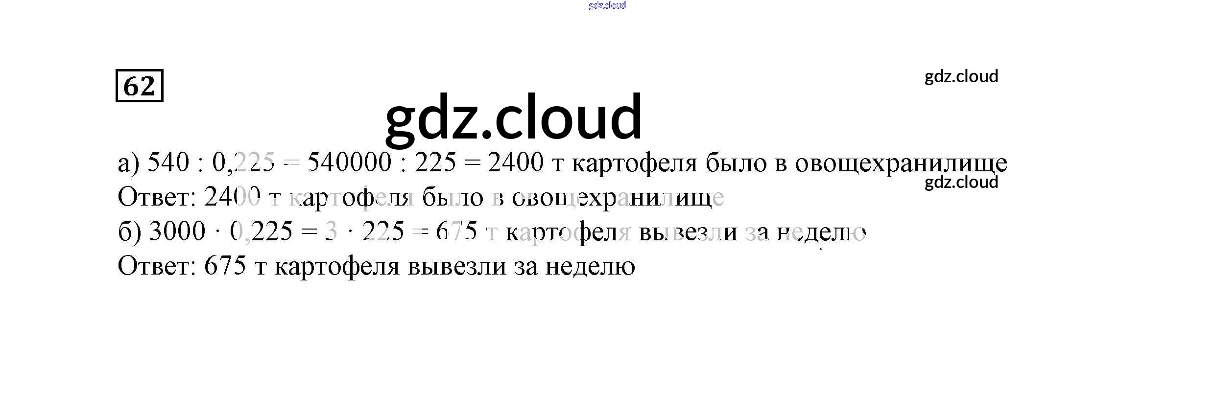 Ответ на задание 62 Учебник Математика за 6 (шестой) класс Истомина 2015 ФГОС онлайн и без номера телефона.
