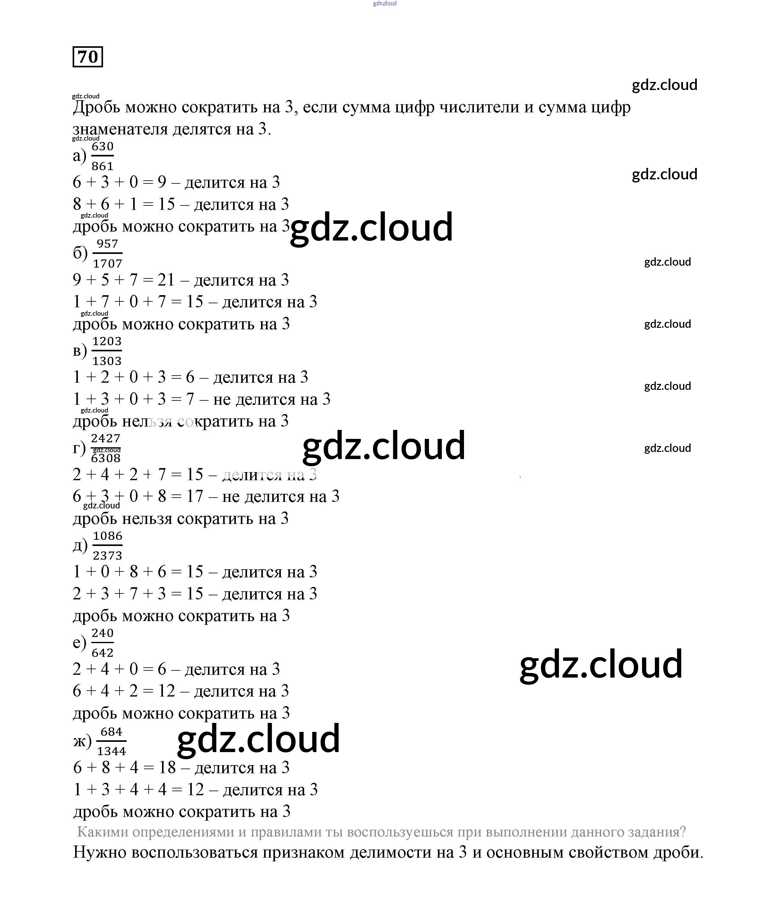Ответ на задание 70 Учебник Математика за 6 (шестой) класс Истомина 2015 ФГОС онлайн и без номера телефона.