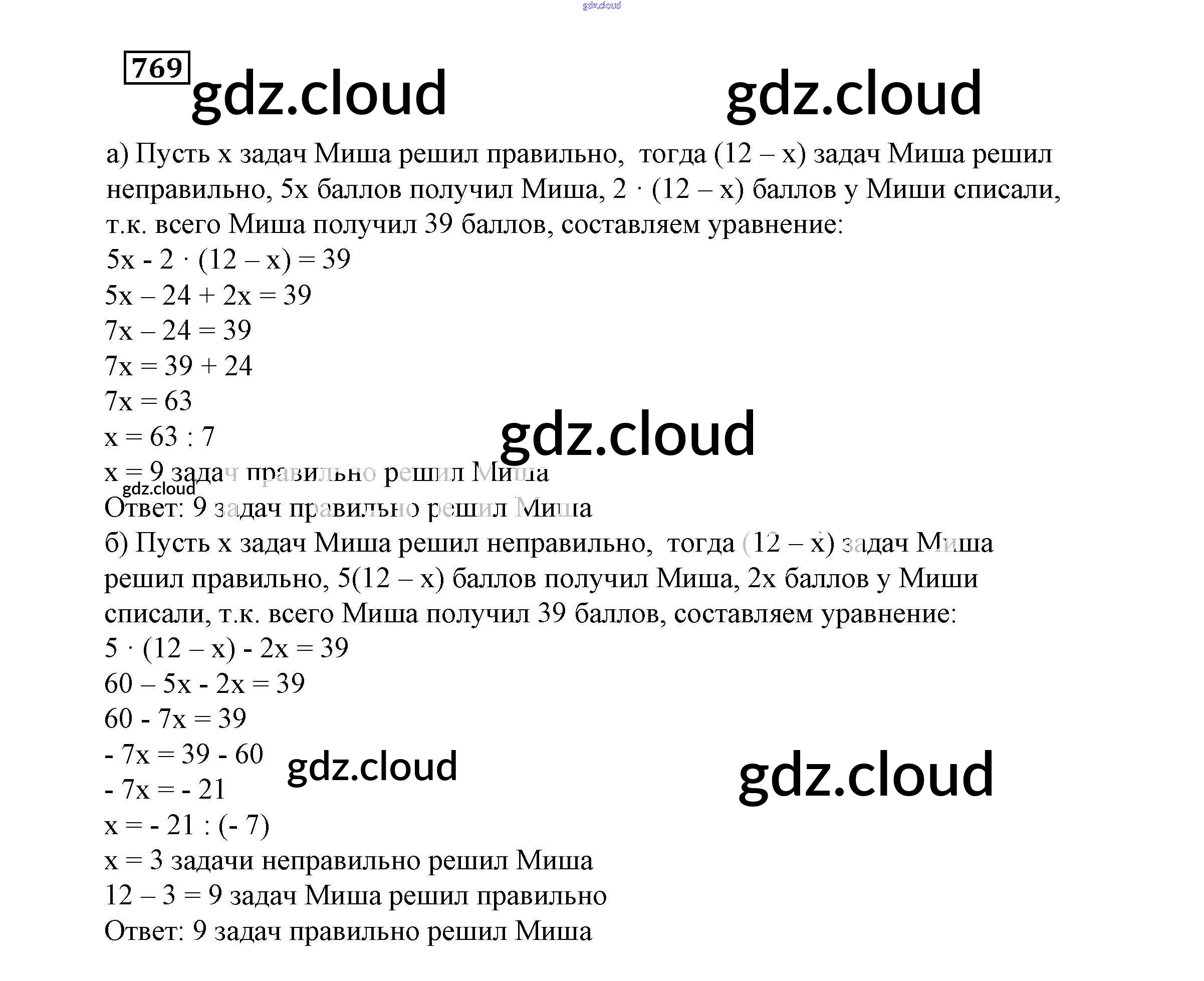 Ответ на задание 769 Учебник Математика за 6 (шестой) класс Истомина 2015 ФГОС онлайн и без номера телефона.