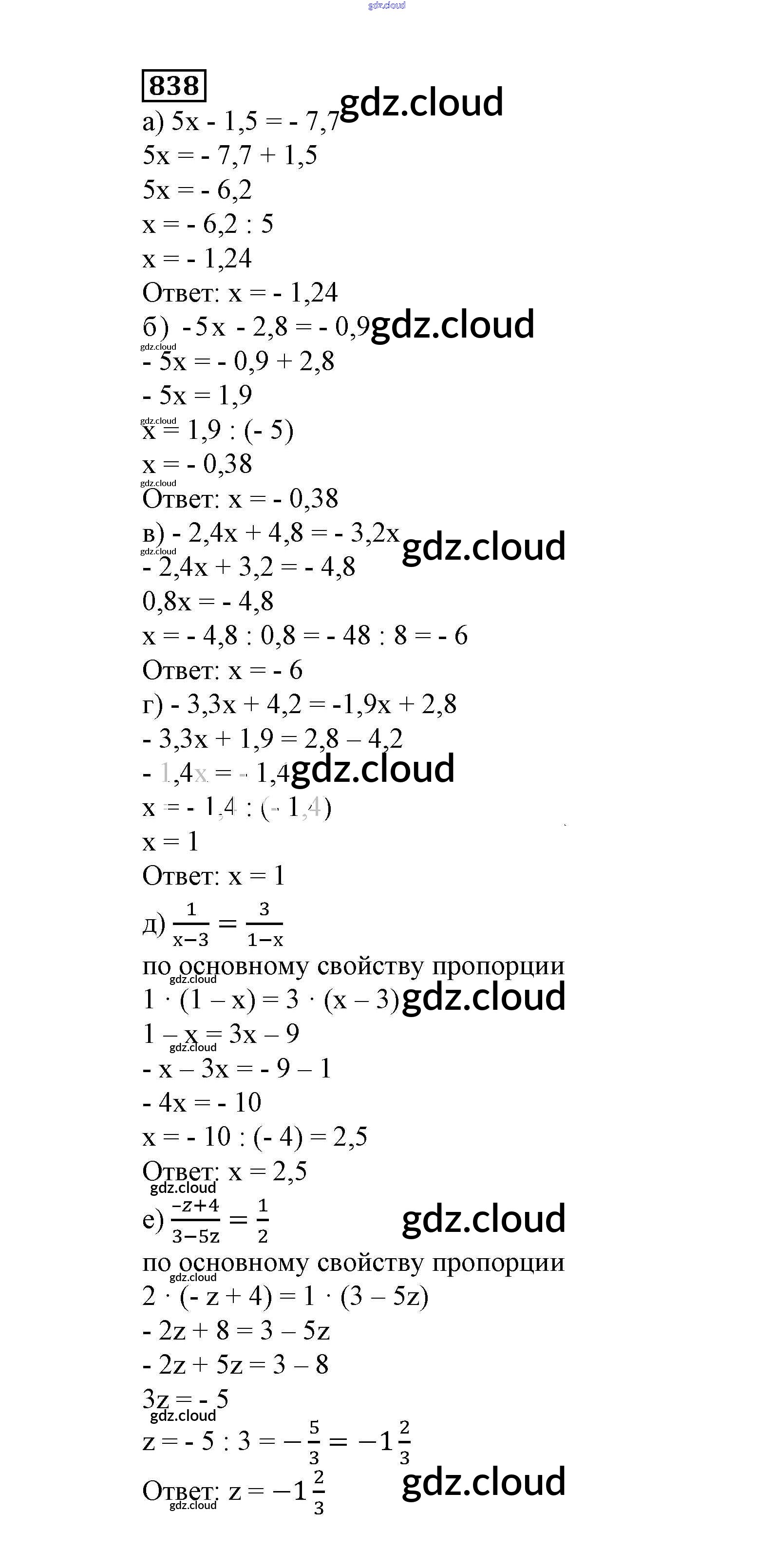 Ответ на задание 838 Учебник Математика за 6 (шестой) класс Истомина 2015 ФГОС онлайн и без номера телефона.