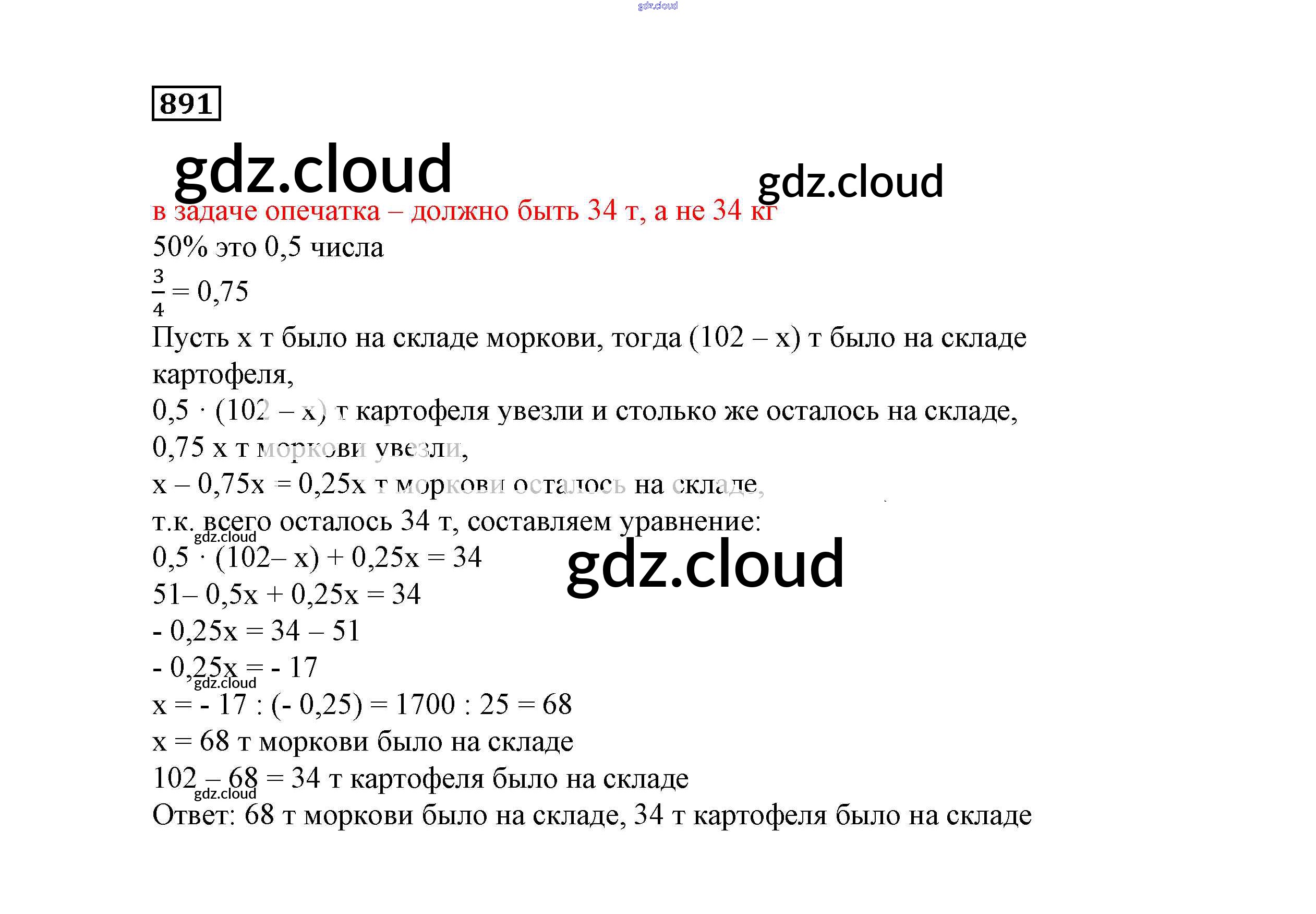 Ответ на задание 891 Учебник Математика за 6 (шестой) класс Истомина 2015 ФГОС онлайн и без номера телефона.